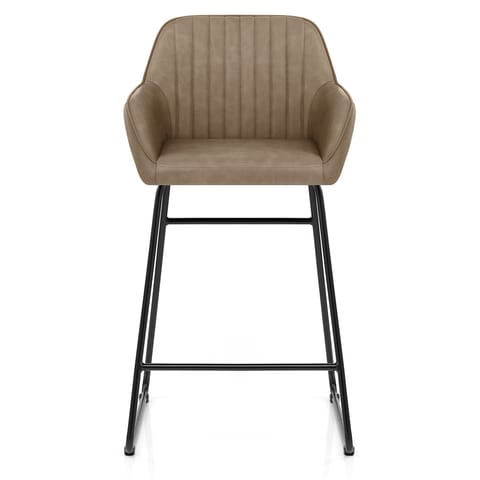 The frame is composed of two sections, both reinforced and connected through bracing bars at the rear and front. The front bar doubles as a footrest if necessary, and the rear bar sits near the top decoratively. All is made of metal with a black powder coated finish, with the addition of four protective floor guards at the bottom of the stool that assist in keeping your surfaces free of scratches.