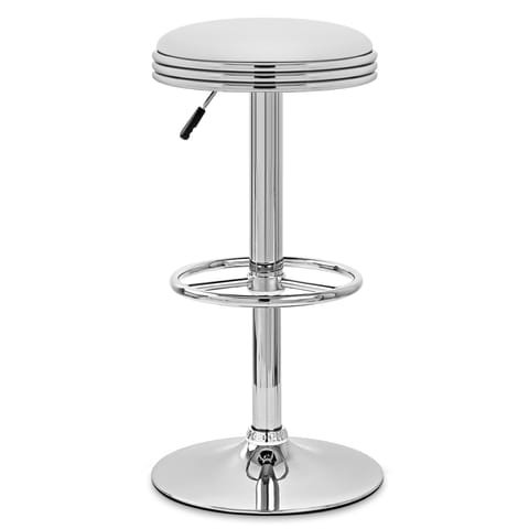 The small but perfectly formed circular seat is padded with high density foam and covered in white faux leather for high levels of comfort, and sits on a beautifully finished, chromed edging below.