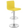 Upholstered in vivid yellow faux leather, the seat is comfortably padded and also has a medium backrest to offer first-class support. Horizontal stitching stylishly segments the seat, and contrasts with the round footrest and sturdy base below.