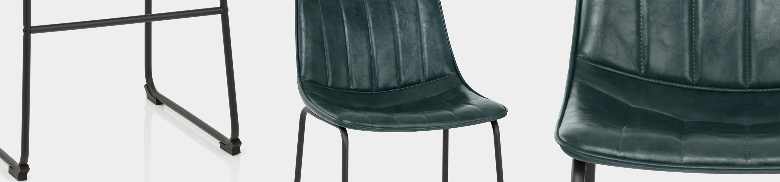 A high backrest with vertical stitch panelling lends ample support, coupled with a densely padded seat in the same antique green faux leather finish. The smooth, curved segment at the rear of the seat pad accentuates the comfortable shape of the Tucker, while piped edging affords a more distinguished overall appearance at your bar or island.
