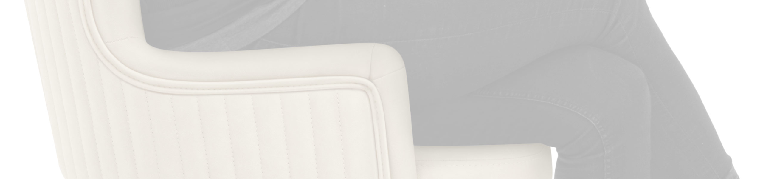 Absolutely accommodating, this is a modern take on a winged back armchair. Cloaked in a beige faux leather, a high backrest wraps around the body before flowing in to embracing armrests. Padded throughout, no detail has gone unmissed with elegant lines of vertical stitching rolling down the outer backrest and a bordering line of stitch piping edging the outer shape.