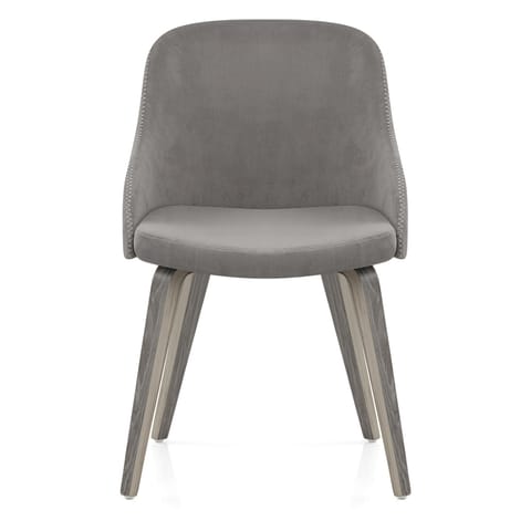 Lending a soft and sumptuous feel, grey velvet upholstery covers the seat and is given a stylish touch with the addition of decorative stitch detailing. The padded seat is encircled by a bentwood backrest that has a light grey finish, which enriches the natural grain of the wood and lends a real contemporary look.