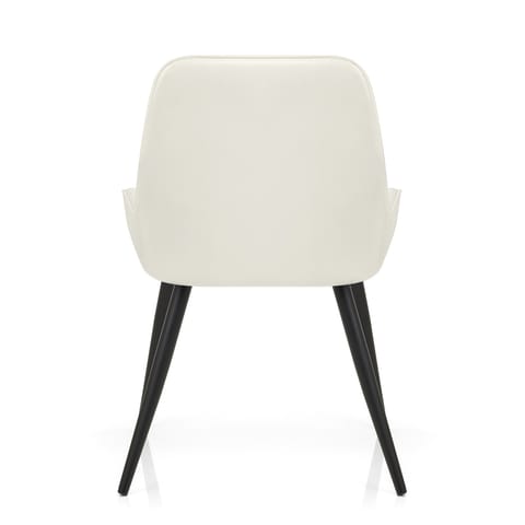 To provide a striking contrast with the cream seat finish, each solid metal leg is powder coated for an alluring black satin colour. As each tapered leg meets the floor, it is capped with a protective foot that aids in keeping surfaces free of marks.