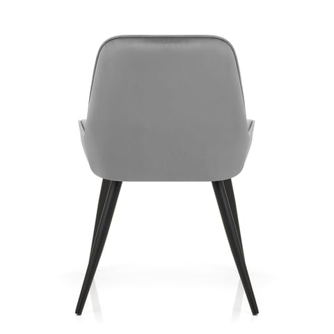 Beneath the seat are four solid metal, elegantly tapered legs, all powder coated for a sophisticated black satin finish. Practical feet at the base of the chair help in keeping floors preserved against marks and scrapes.