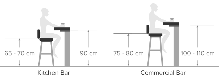 | Commercial Bar | 100 - 110cm | 75 - 80cm |
