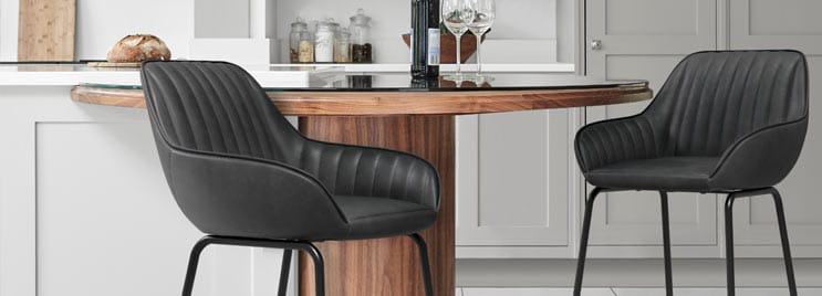 Height is probably one of the most important factors when choosing a stool. To be comfortable, there needs to be enough room for your legs to go under the bar or worktop, so that your posture is similar to sitting at a table. Lots of designs feature a gas-lift mechanism, allowing you to adjust the height to suit you.