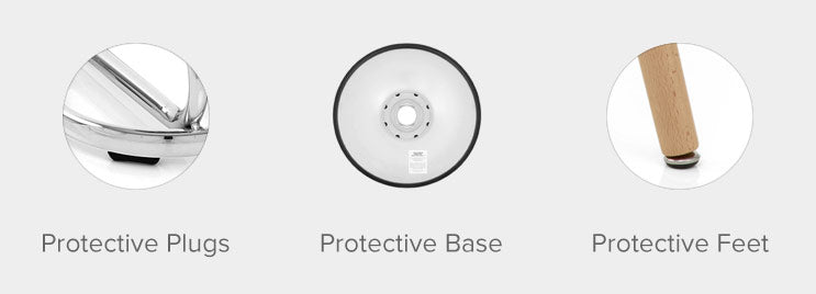 To help to look after your floors, our bar stools include protective floor plugs or pads on four-legged designs or a protective base on gas lift models. The design does vary- some feature a rubber floor guard, while others have floor protectors made of felt. You can find out the style of floor protector included with each product by looking at the individual features on our website. For more information, take a look at our article on protective bases.