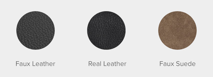 We use faux leather, bonded leather and real leather, and we also use faux suede. The type of leather will be specified on the product’s listing page. You can find out more about these materials in our Furniture Glossary.