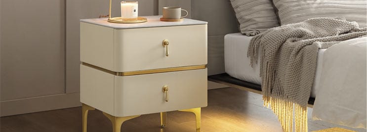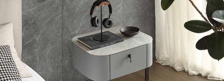 Another important consideration is the material of the bedside table, as this decides, texture, durability, and consistency. From clean lines and sleek finishes like stone, metal, or high-gloss lacquer, to more conventional designs featuring wooden tones, intricate detailing, and classic hardware, your choice of material can make a real impact.