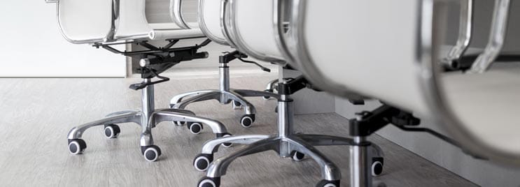 The majority of our office chairs sit on a five-spoke wheeled base. These provide optimum mobility and enhanced efficiency, as you glide around the office from desk to printer to filing cabinet. As the human body isn’t designed to be sat stationary for prolonged amounts of time, this movement can aid a comfortable seating position whilst warding off health problems. However it may be that you would prefer an immobile base for added stability. These are also preferable on carpeted floor surfaces, which casters can sometimes leave threadbare. Our collection of fixed height chairs come on trendy cantilever frames that cut a striking silhouette.