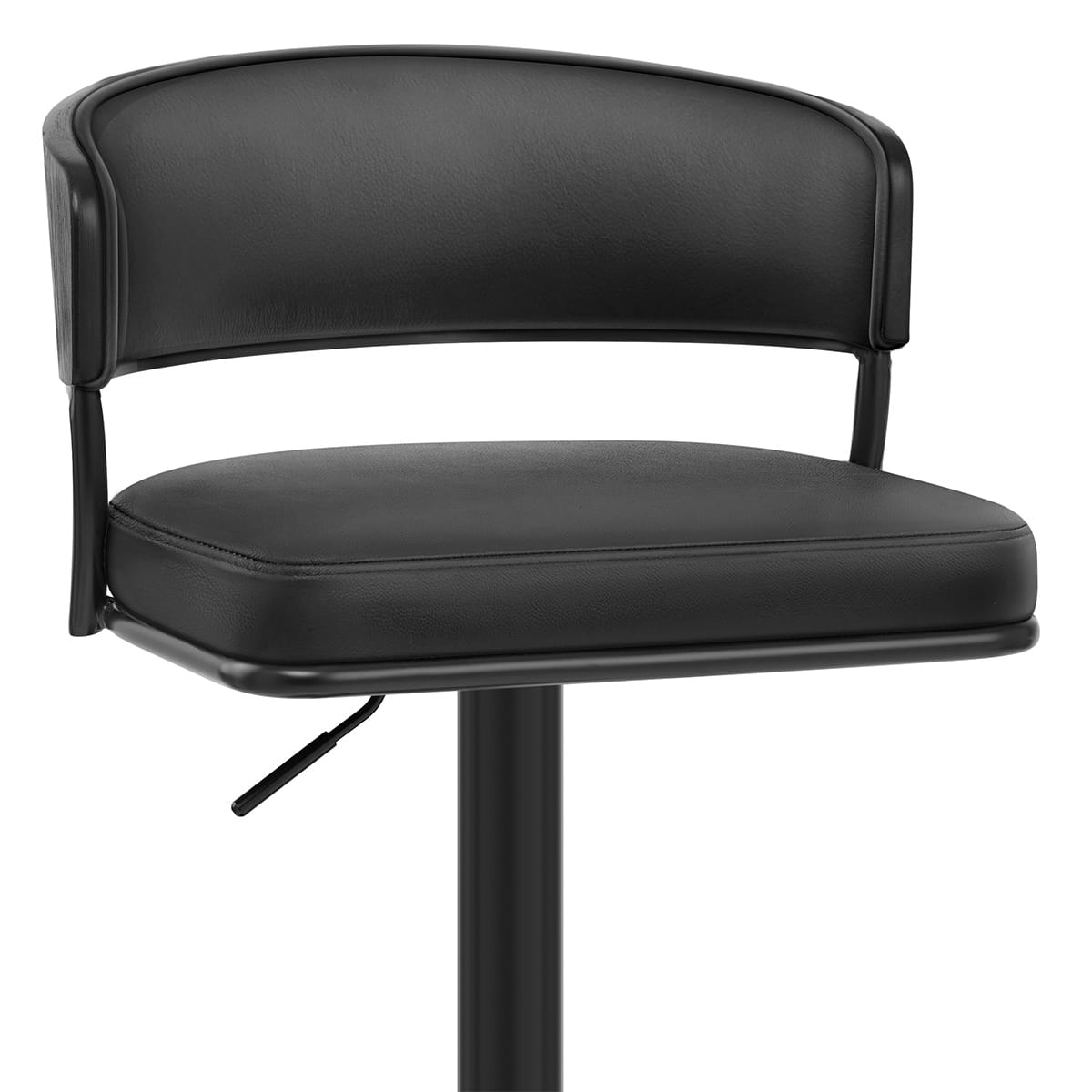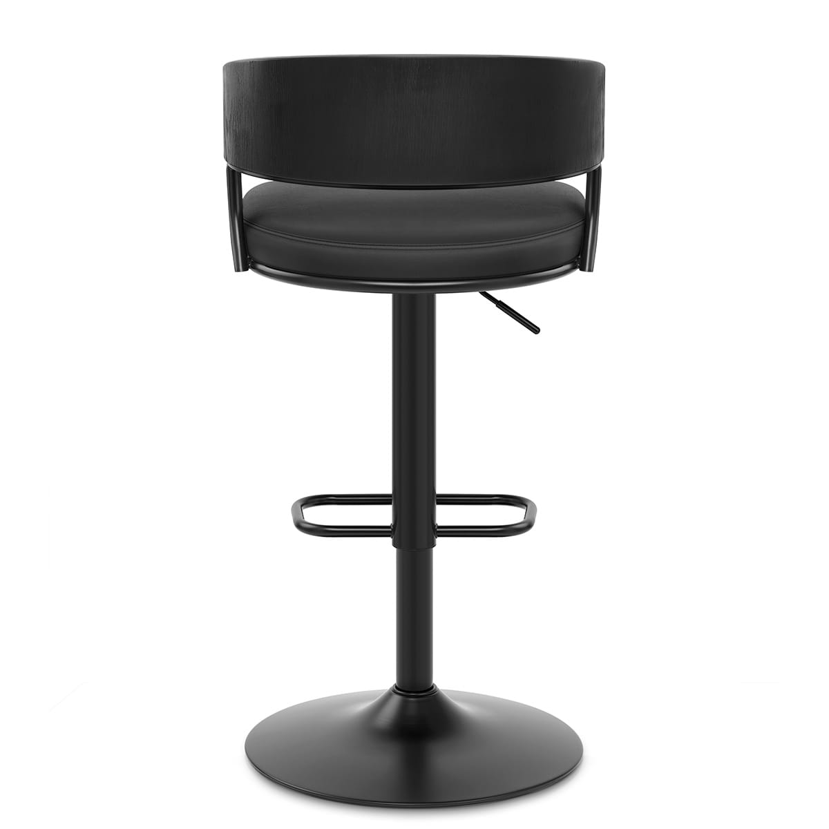 To achieve a crisp and sleek final look, the metal frame has a black powder coated finish. A full 360-degree rotation of the seat and adjustable height are made possible by the gas lift mechanism housed within. Further down the stool is a curved, rectangular footrest, and at the foot is a strong base, ringed by a floor protector to minimise scratches.