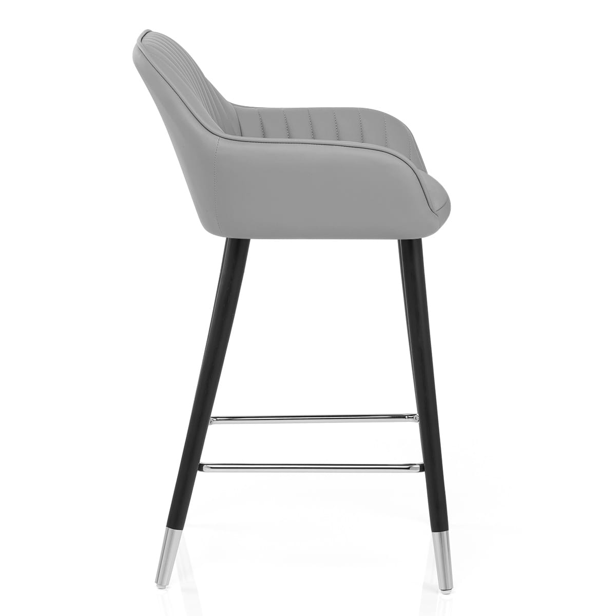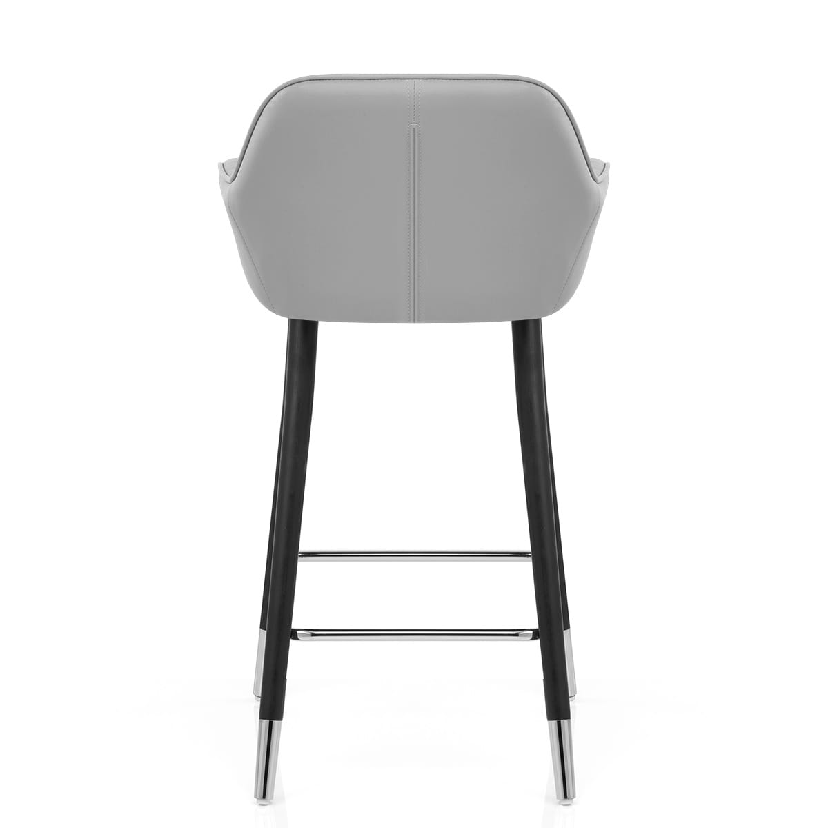 A polished chrome footrest and matching chrome leg tips provide a trendy aesthetic, paired with the stool's chic black frame finish. Each solid wooden leg is capped with a protective plug that helps in avoiding scratches on floors and surfaces.