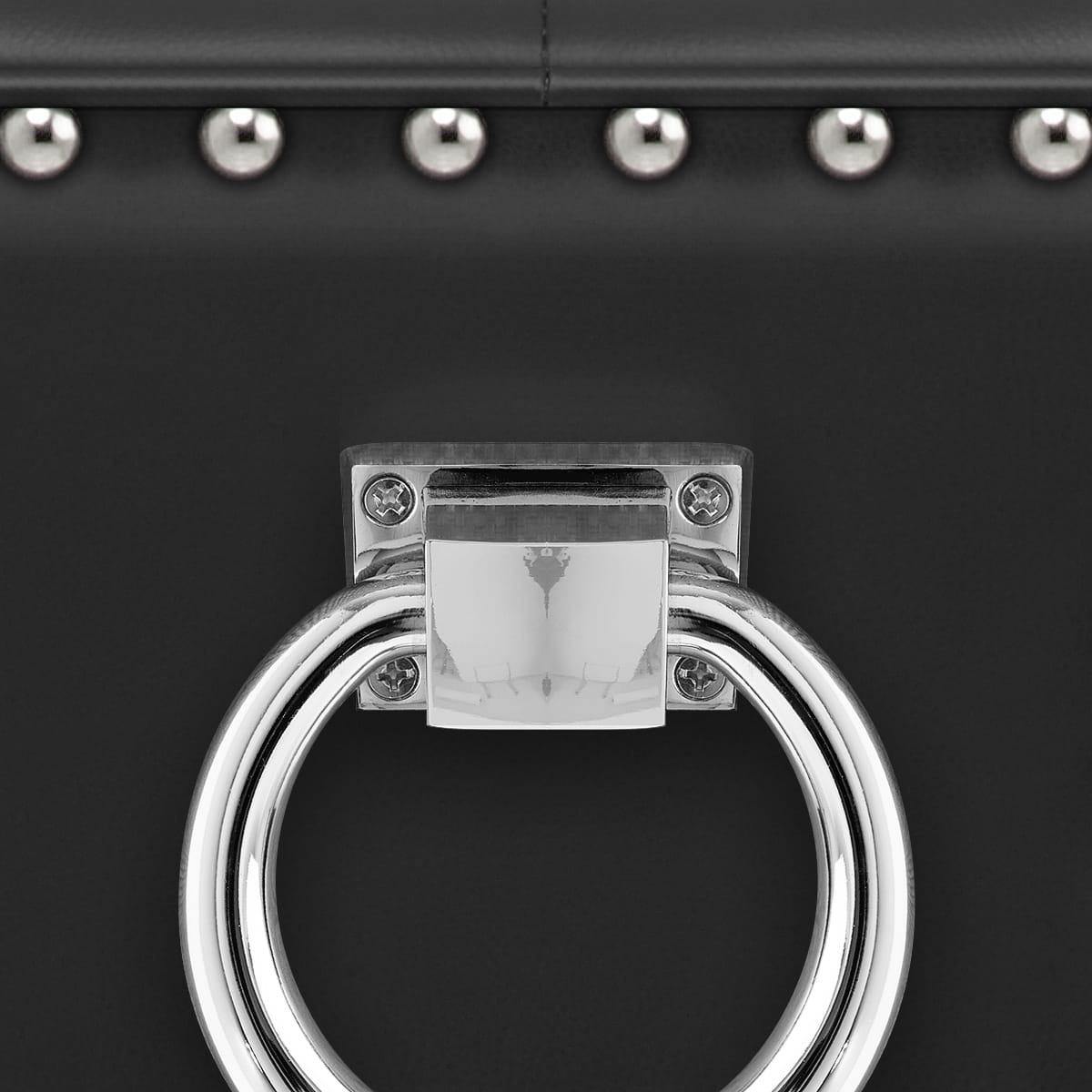 Belted for quality comfort, the padded seat is covered with luxurious black bonded real leather, and the encompassing backrest boasts quilted button detailing. Radiating an undeniably upmarket appeal, the seat is edged with decorative chrome studs for an ornate touch. The rear of the backrest also features a tasteful chrome ring as a unique focal point.