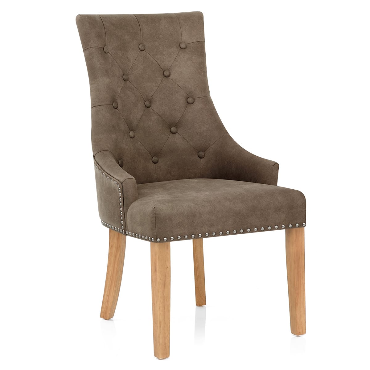 Antiqued brown faux leather delivers a classic country look and is enhanced by the superb comfort of the belted seat pad. Decorative quilted buttons detail the front of the backrest, whilst a chrome ring adorns the rear and is accompanied by chrome stud edging.