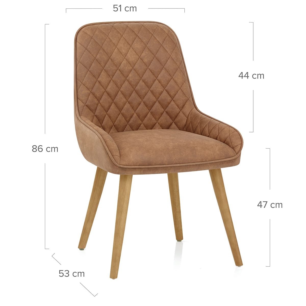 A traditional oak finish to each of the Azures solid wooden legs complements the tan shade of the seat. Shaped in a cylindrical fashion and cascading to the floor, the frame is set at the exact height of the average dining table and to help reduce any potential damage to your floors, adjustable protected feet are fitted at the end of each leg.