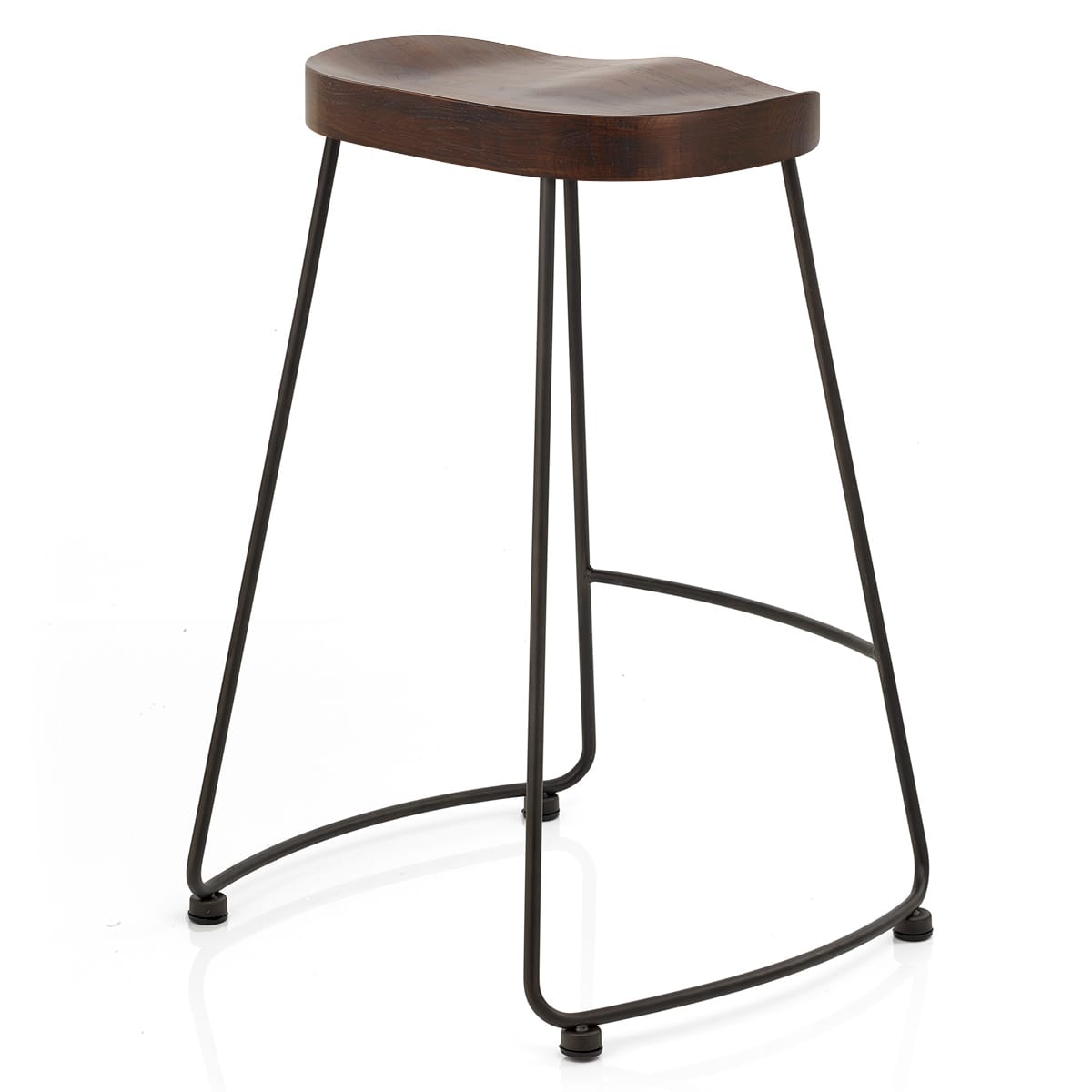 A simple sculpted design, the solid wooden seat is moulded to suit the natural shape of the body, helping to ensure a comfortable feel. Meanwhile, the dark wood finish has a rustic quality that matches the frame below.