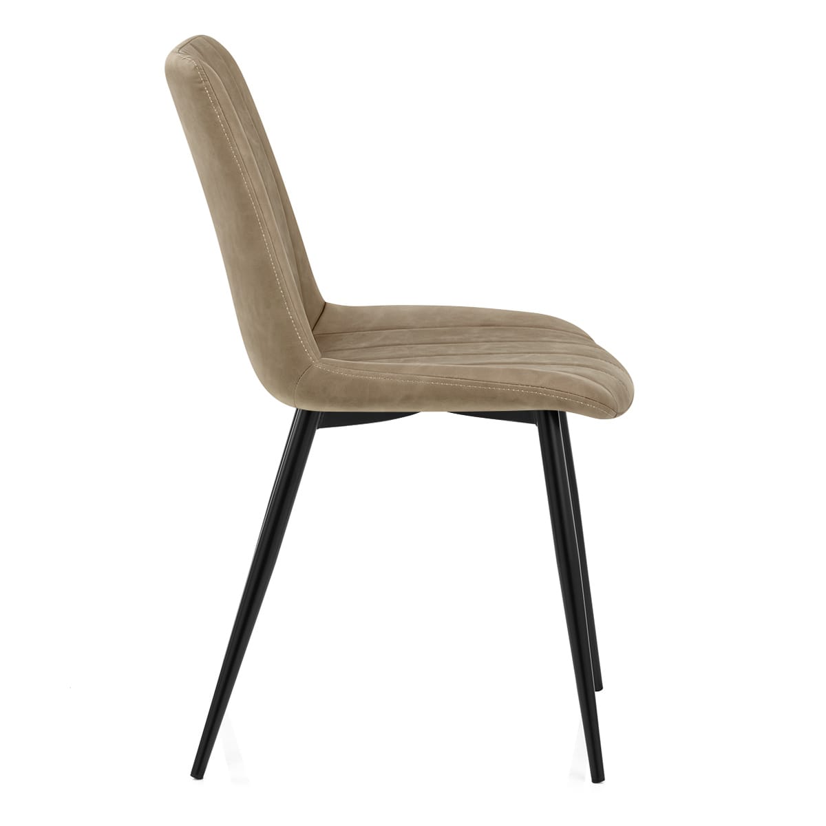 Vertical feature stitching on the seat pad extends up the high backrest, creating an impression of retro chic luxury. The faux leather upholstery has a strikingly refined looking shade of antique brown, always inviting as part of your decor.