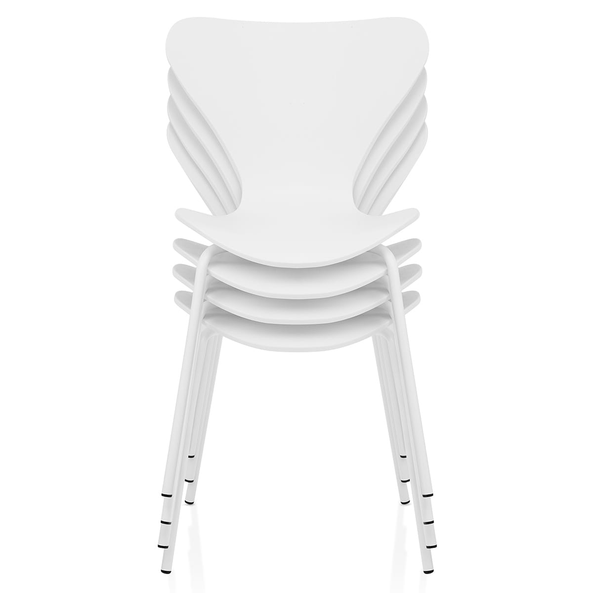 Supported by four white metal legs that descend to the floor and provide a strong and sturdy base, the Candy is both fashionable and functional with its sleek design. Stackable in groups of four, each leg is equipped with rubber pads that help to protect a wide range of floor surfaces.