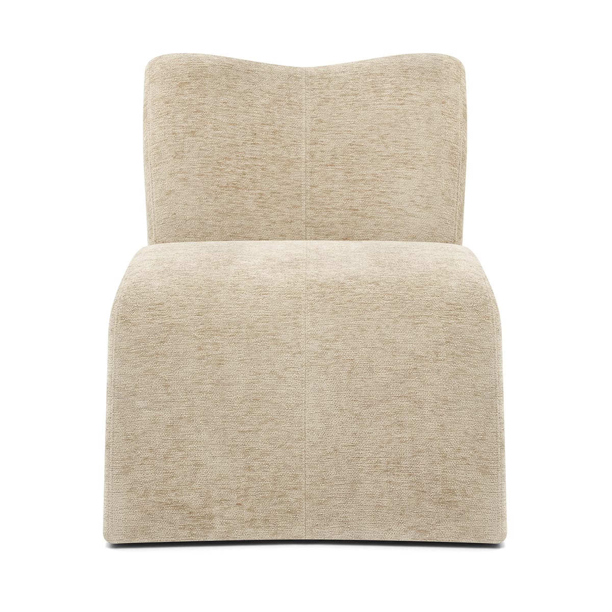 Featuring a wide, curvaceous beige fabric seat that invites you to sink in and unwind. Its continuous, flowing design merges seamlessly with an angled yet gently curved backrest, offering both comfort and visual harmony. Finished with a central stitched detail for definition, the sculpted form embraces the body while maintaining a sleek, modern look.
