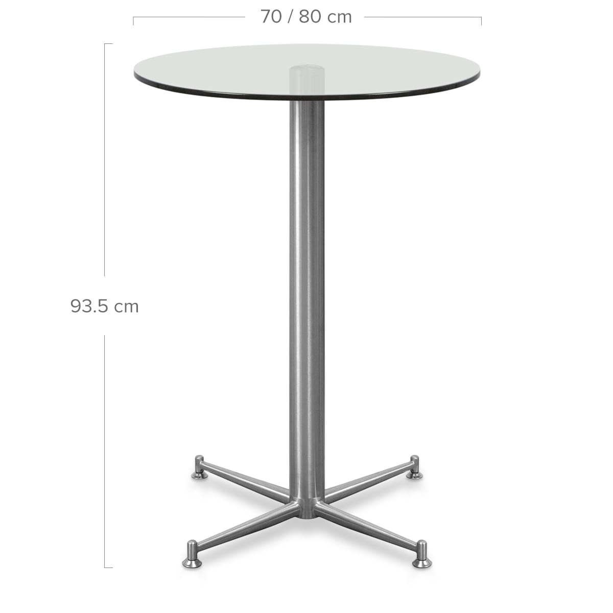 The Cortina Round Glass Bar Table is a first-class modern design, set to enhance your bar area with its chic design. The round glass top is offered in clear glass, lending to a clean and contemporary look. A stylish and substantial design, the tabletop is available with either a 70cm or 80cm diameter, larger than a typical bar tables which is ideal if you want to fit more people around it. Available in brushed steel and ensuring strength and stability, the thick round column is set on a sleek four-spoke base, with feet and protective plugs to look after your floors.