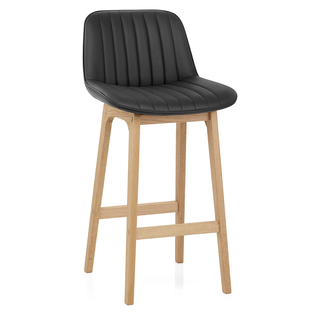 Produced with a natural oak finish, which adds warmth and a touch of sophistication to the design, the frame features a fixed height that is suitable for the average kitchen counter. Contrasting nicely with the seat upholstery it creates a visually appealing look. Additionally, it is equipped with a horizontal footrest, providing added support and comfort.