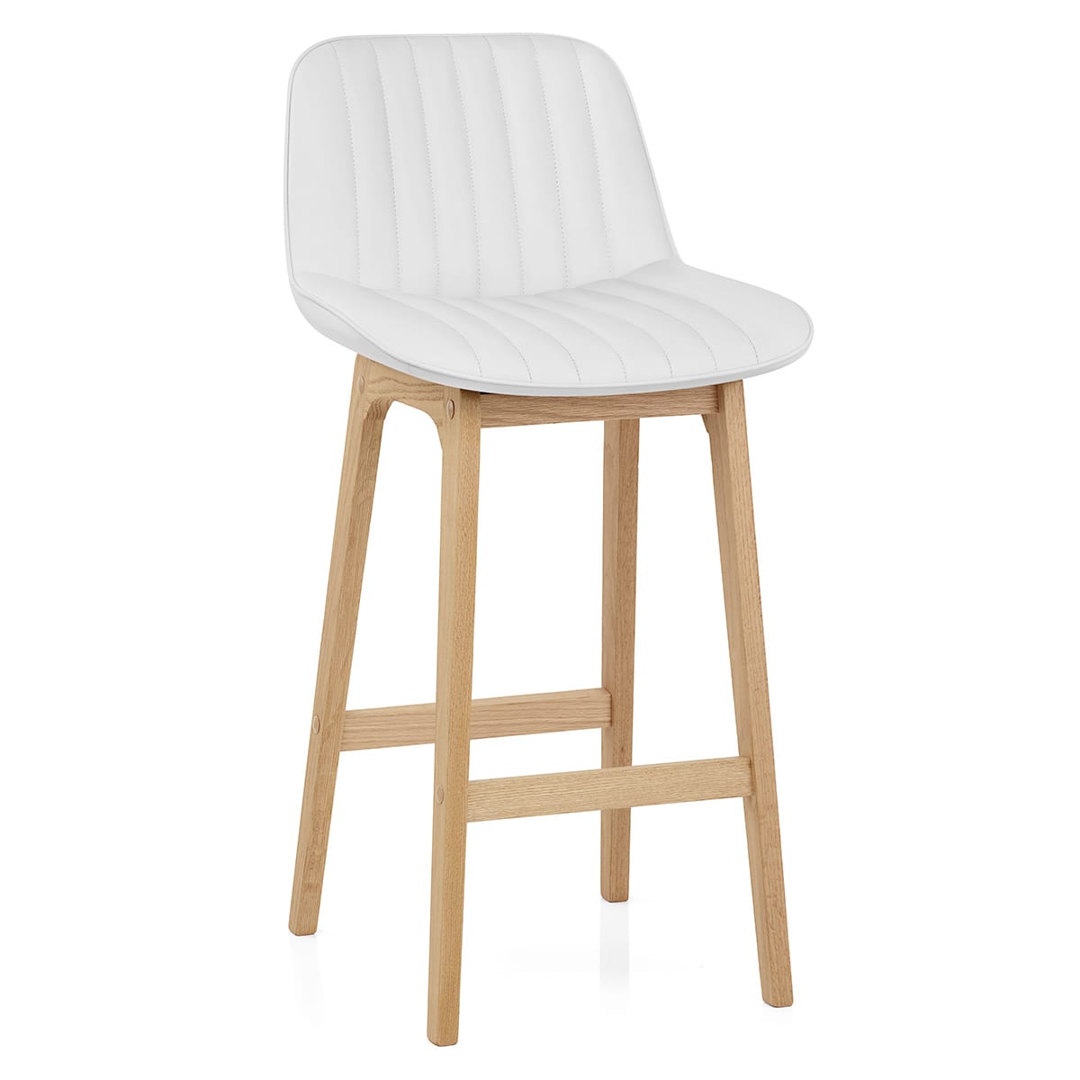 The frame is made with a natural oak finish, for a timeless look. Designed to be fixed at kitchen counter height, this makes it ideal for use at kitchen islands or counter areas. A contrasting appearance against the seat adds visual interest to the overall design and it also includes a horizontal footrest, providing a comfortable place to rest your feet.
