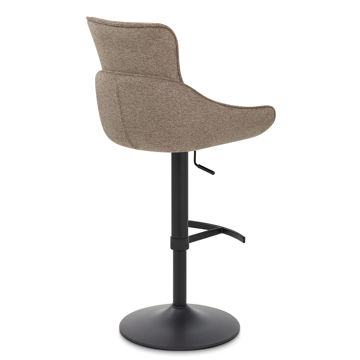 The frame of this modern bar stool features a matte black finish. The ergonomic design includes a gas-lift mechanism which provides height adjustability and 360-degree rotation, making it ideal for use at any counter space. A curved T-bar footrest provides added support while you are seated and there is no need to worry about damaging your floor thanks to a concealed protective floor guard.