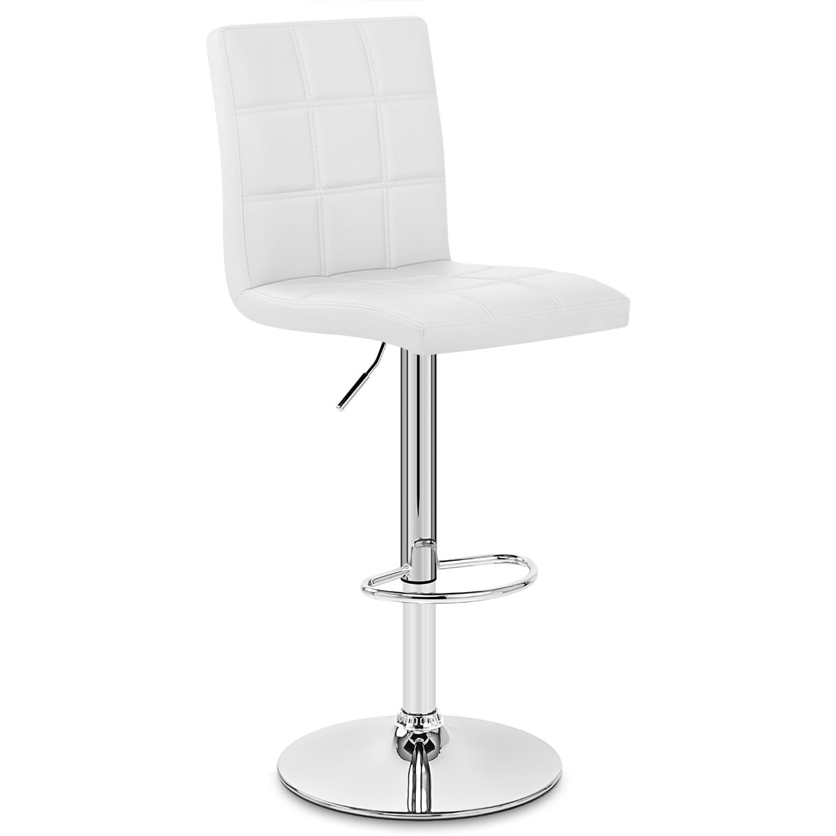 Padded for comfort, the chic white faux leather seat exudes a crisp minimalist aesthetic, and is enhanced by a trendy grid stitching.