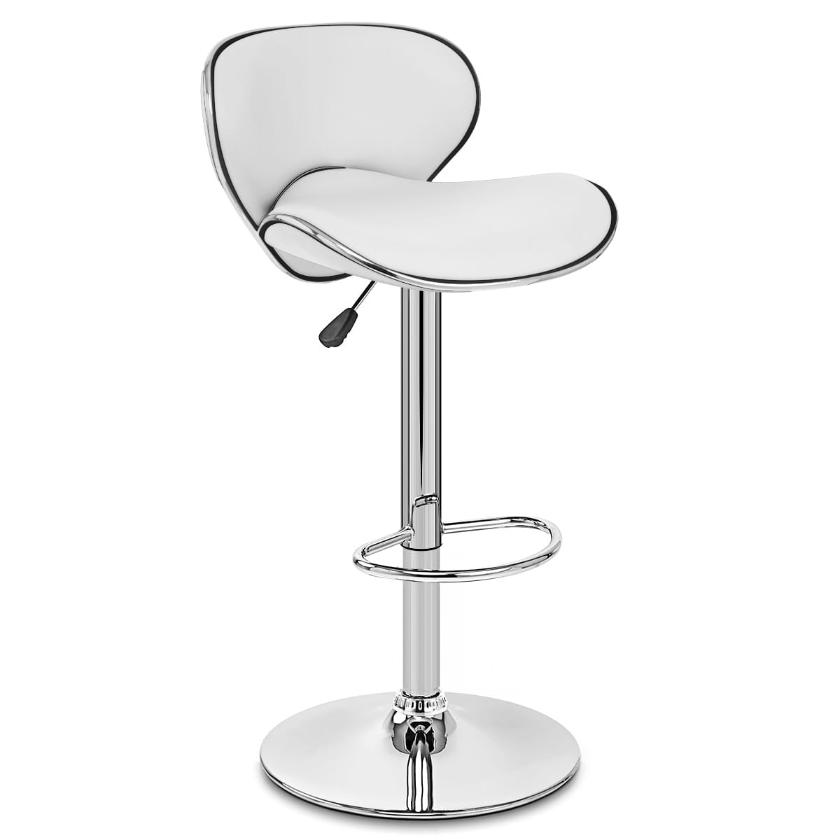 The seat stands on a chrome stem, in which is the variable height gas lift and 360-degree swivel mechanism. Added features include a chromed footrest and a sturdy circular base, which has a rubber ring beneath to protect your floor.
