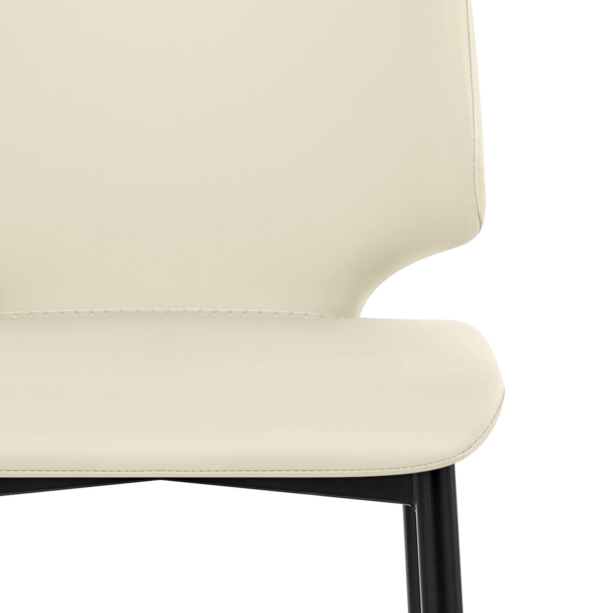 Visually reminiscent of an hourglass design, the shapely form of the seat creates an attractive outline in a captivating cream faux leather. A tall ergonomic backrest pairs with the seat pad for a supportive seating experience, whilst a neat double stitch line travels around the outer edge and a horizontal piece dissects the join of the seat and the back.
