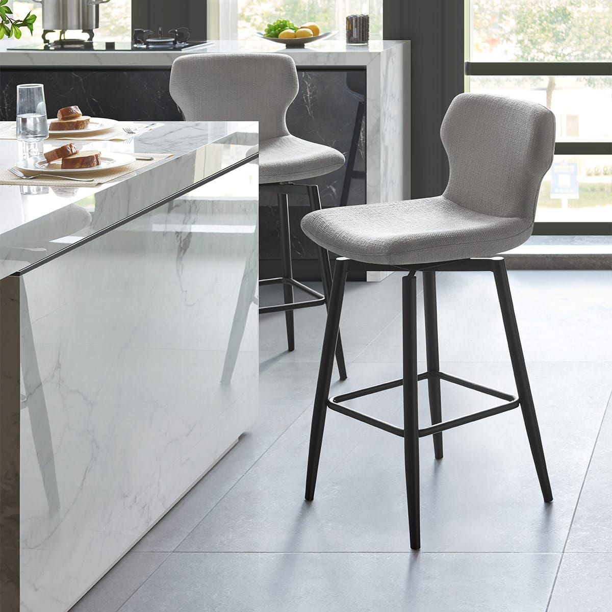 Elle Bar Stool Light Grey Fabric
