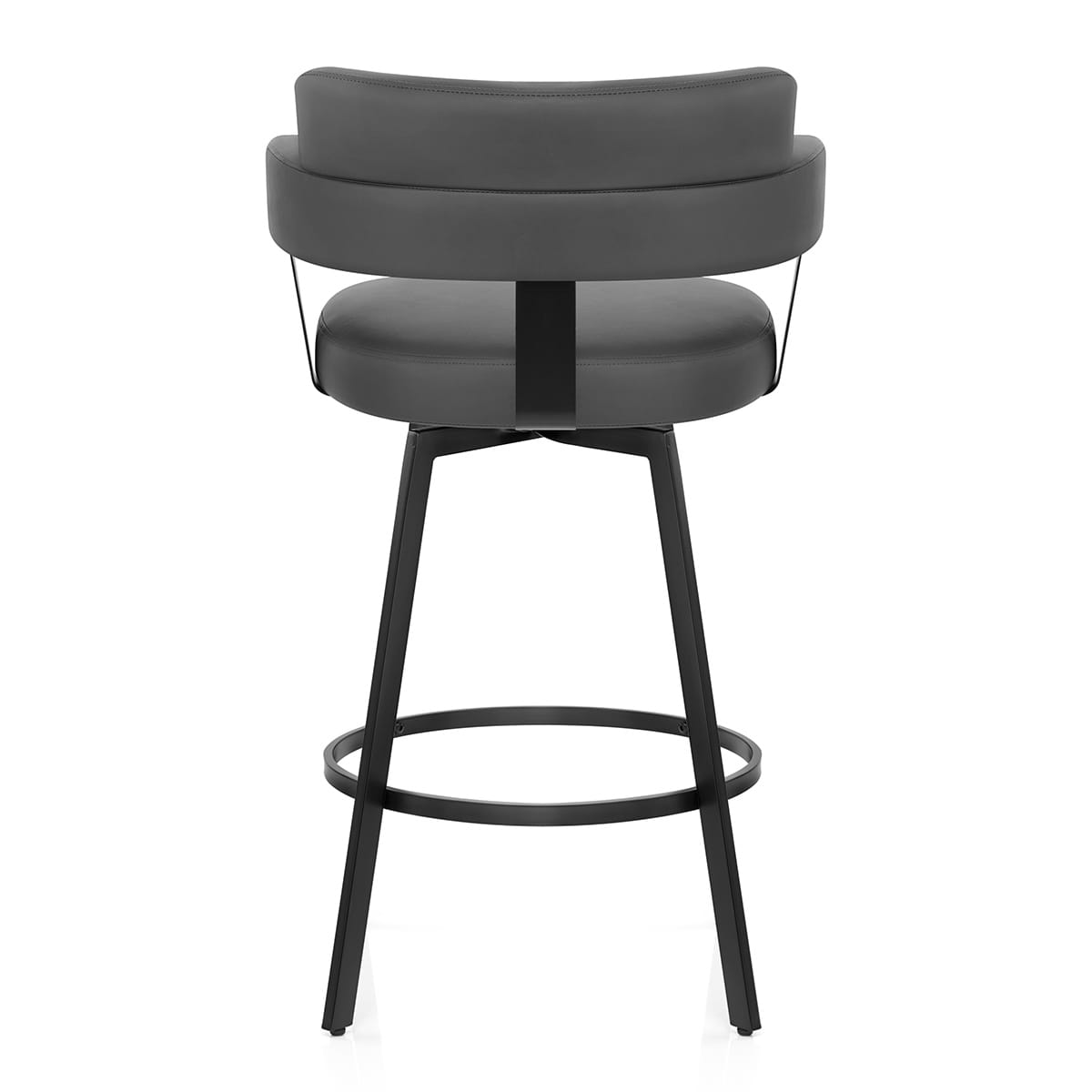 A trendy black powder coating and a fixed kitchen counter height form the basis of the Enzo's frame. Its rectangular four-legged design provides sturdy support, and its gentle pyramid formation creates a visual appeal. A squared circular footrest provides a comfortable element, and a 360-degree swivel plate offers functionality. For extra protection, each leg is equipped with an adjustable protective foot that will aid in caring for your floors.