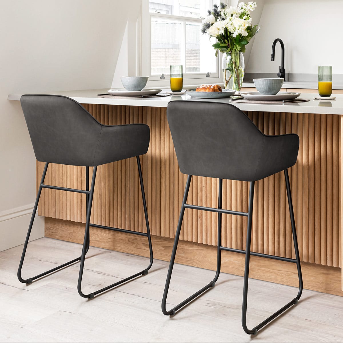 Bar stools generally come in two main heights - kitchen counter (around 65cm) and bar height (around 75cm). Measure the distance from your floor to the underside of your counter and leave around 25–30cm for comfortable legroom.