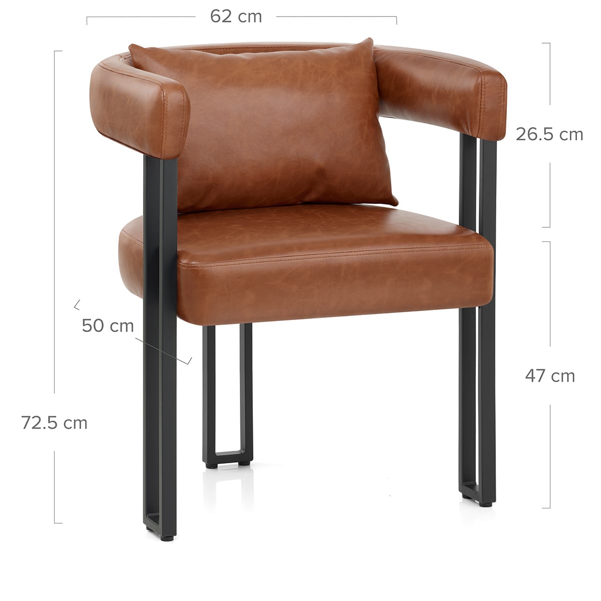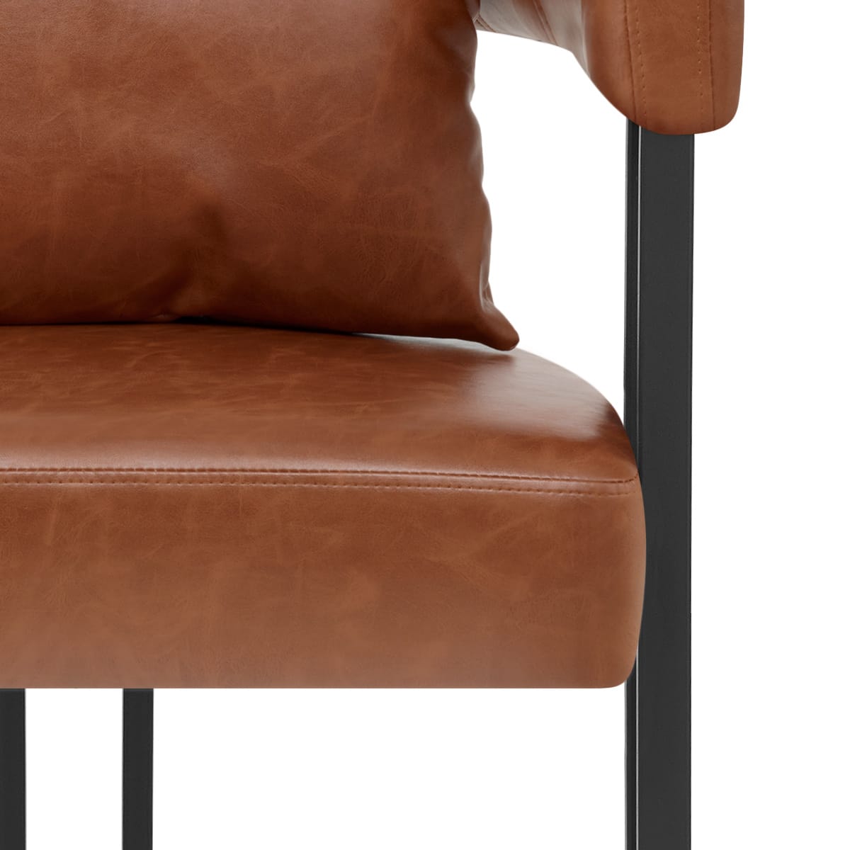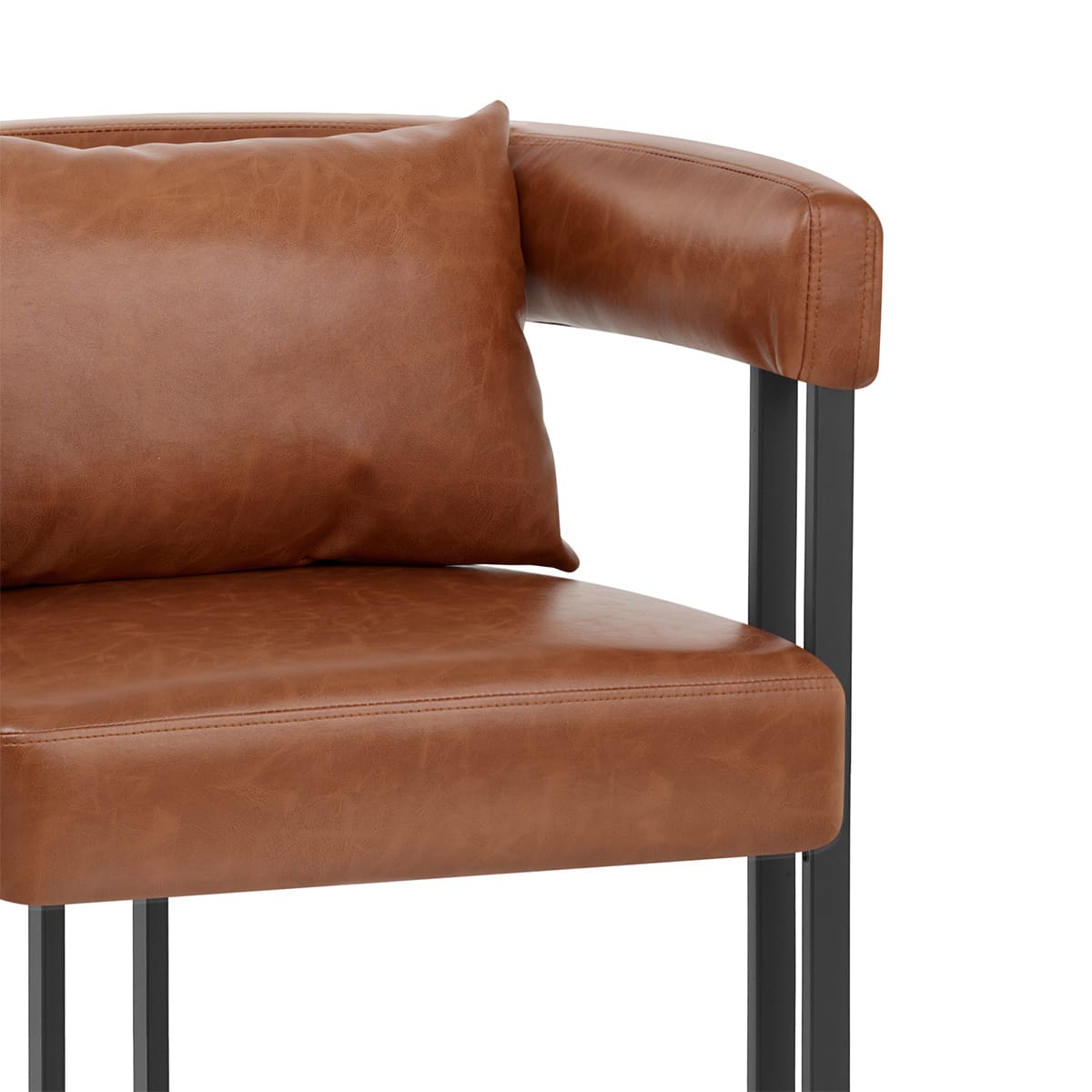 Wrapped in antique brown faux leather, the two-piece seat features dense padding for lasting comfort. With a semi-circular shape, its medium-height backrest curves seamlessly into arms either side, creating an inviting, wraparound shape. A matching padded cushion nestles perfectly into the back, adding extra support and a layered, designer look that enhances both comfort and style.
