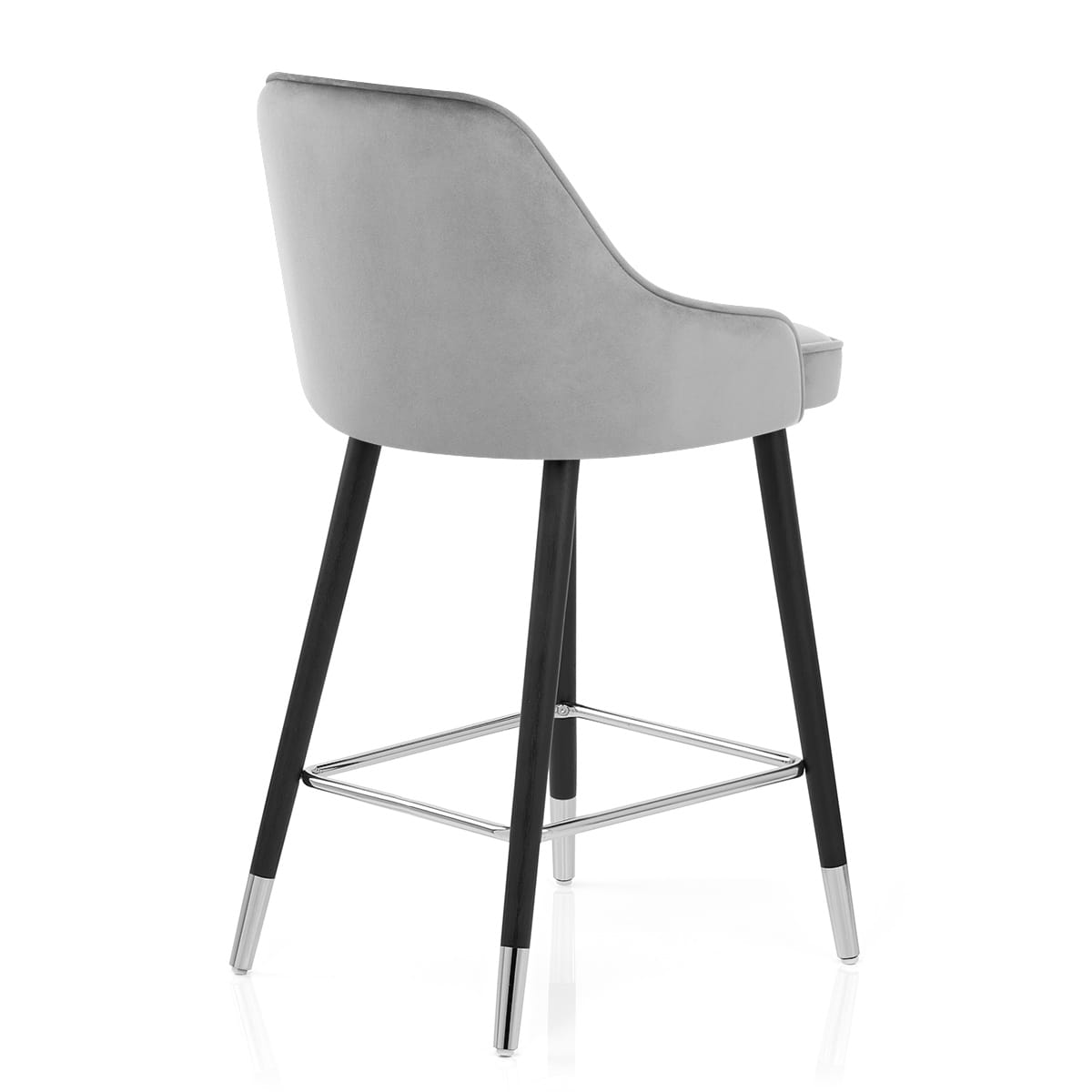 Glamorous grey velvet upholsters the seat for exquisite appeal and complements the frame below. Padded entirely, the seat has a high backrest that encompasses the user for additional support.