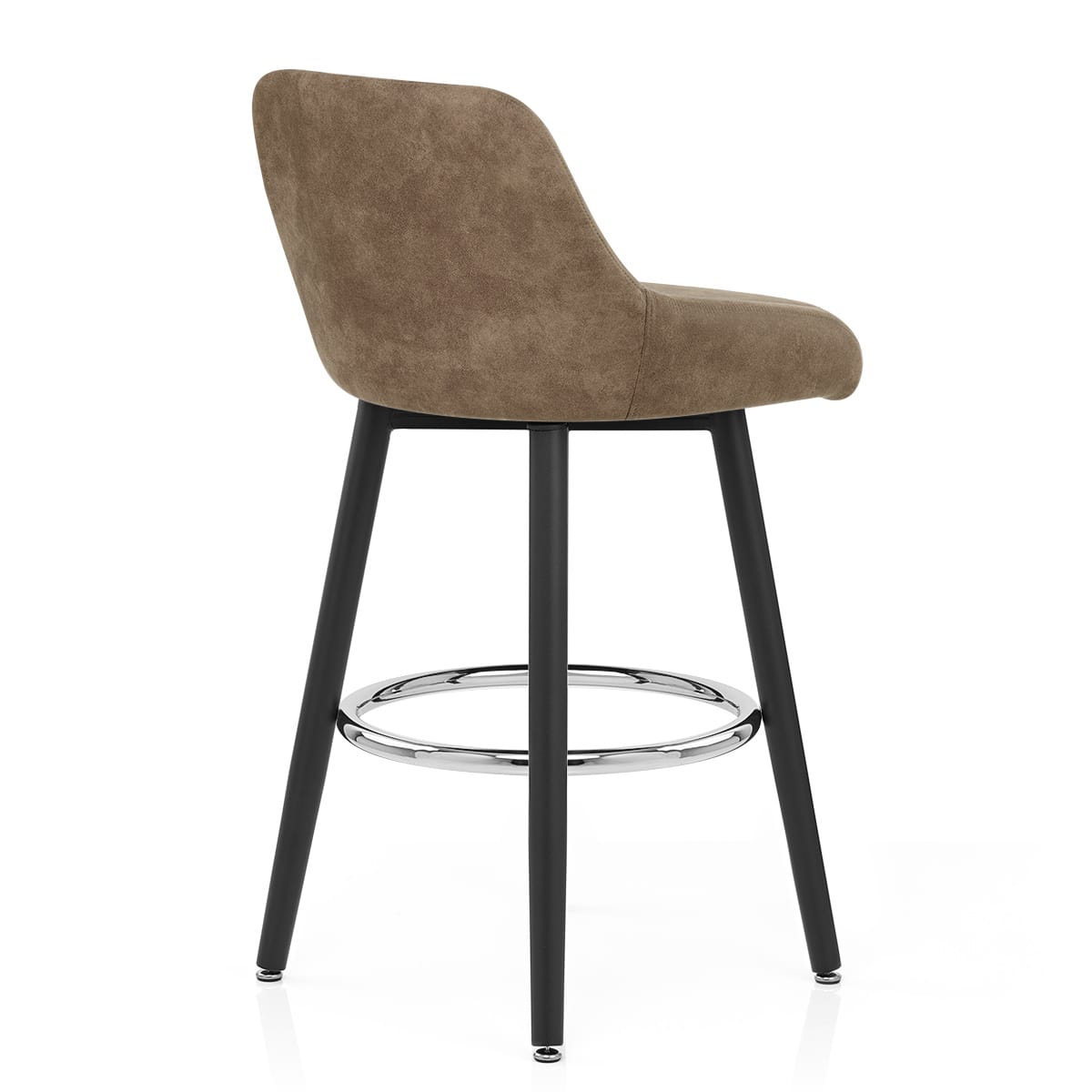 Brown antique faux suede covers the seat and is finished with segmented vertical stitching down the back. The mid-height backrest is a visual contrast with the cushioned seat pad on this vintage style stool. Best of all, the seat's swivel plate allows for easy accessibility in everyday use.