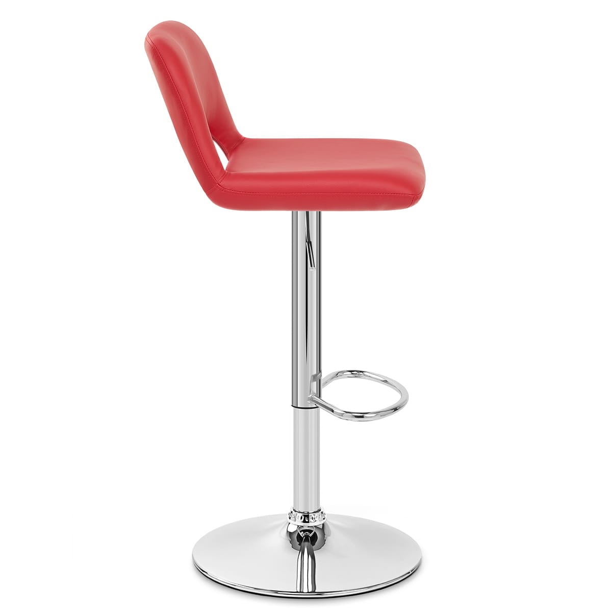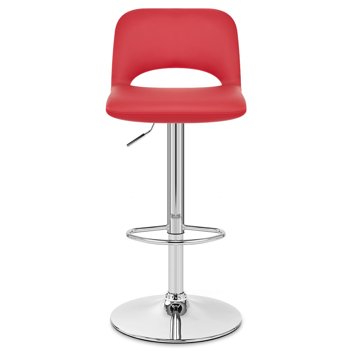 The half moon shaped divider between the Hugo's padded seat and backrest makes this uniquely contemporary design even more noticeable at a worktop or counter. Beneath the red faux leather upholstery is dense foam padding to enable a sublime degree of comfort.