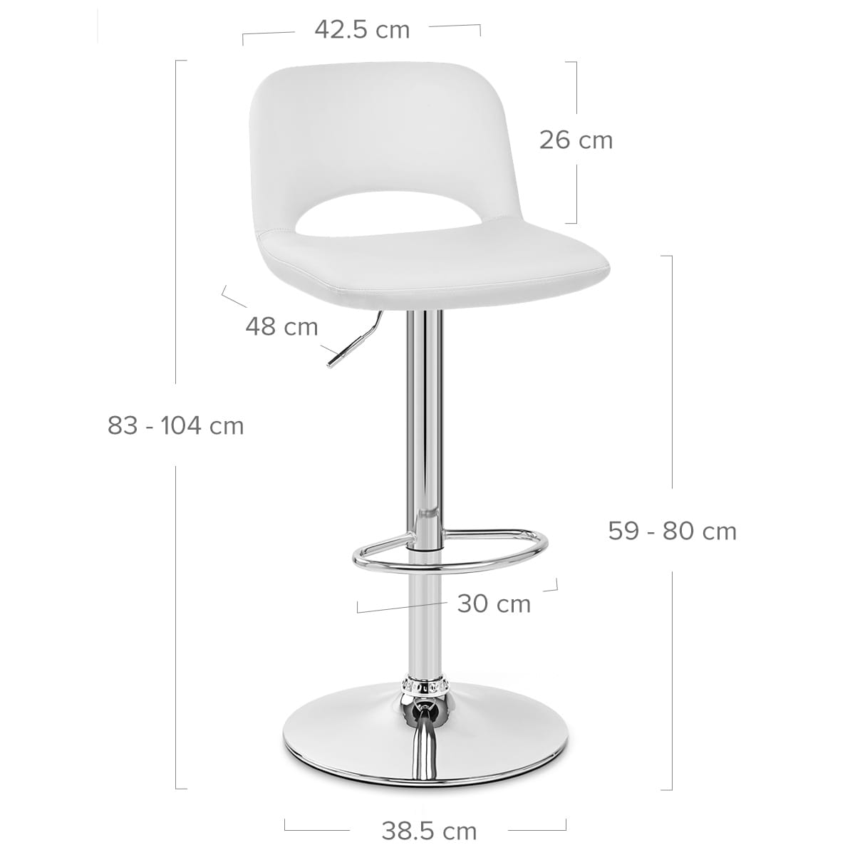 Equally appealing is a stable metalwork comprised of a gas lift column and circular domed base. The frame boasts a polished chrome finish, also applied to a practical curved footrest section. On the underside of the base is a floor protector that guards against scuffs and marks, for your peace of mind.