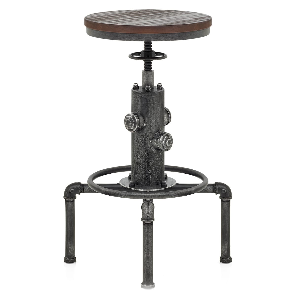 In true industrial style, the steel frame has a repurposed fire hydrant design, which is enhanced by the authentic antiqued gunmetal finish. Water outlets are included to add to the realistic effect, and the four legs are fashioned like water pipes with an integral round footrest on top.