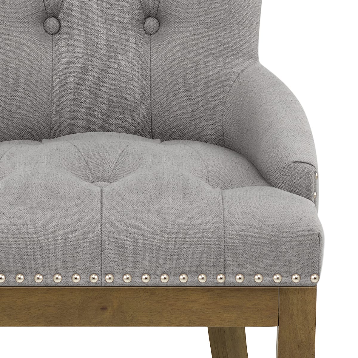 Designed with style, the seat has a belted support for ultimate comfort and is completely upholstered in stylish grey fabric. Meanwhile, the button detail and metal stud edging offer an exclusive opulent touch.