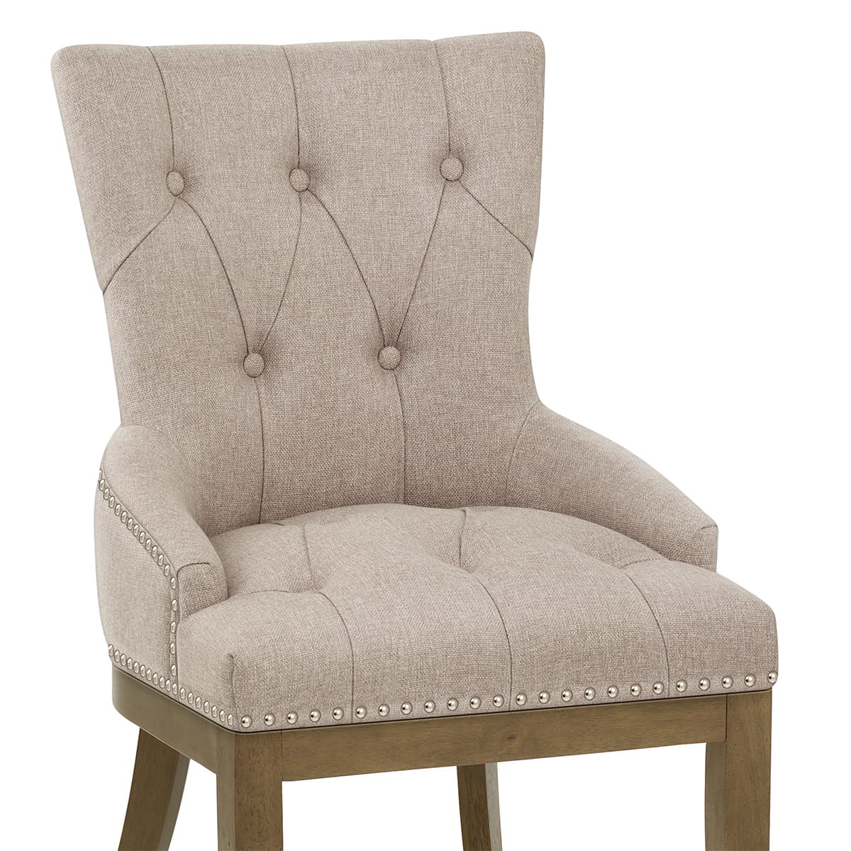 Charming in tweed, the fabric seat has many decorative details, including metal stud edging and deep button detail. Additionally, there is a belted frame beneath the seat to offer first-class comfort.