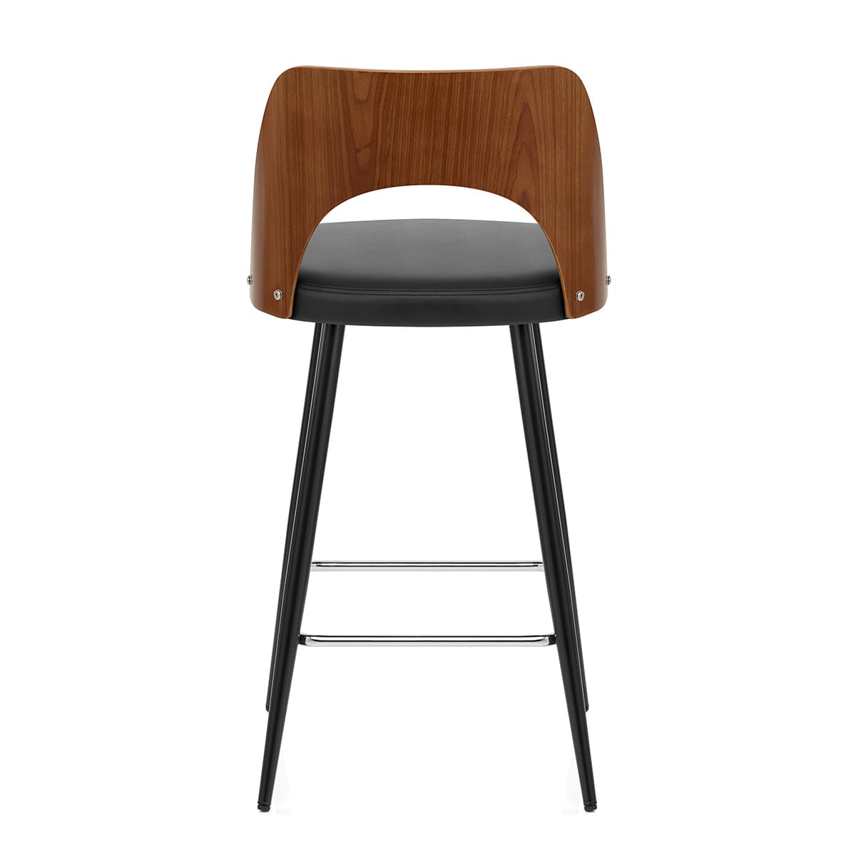 Densely padded, the black faux leather seat cushion invites you to unwind upon it. Not only is it the perfect thickness to support you while remaining comfortable, but your posture is further supported by a tall backrest finished in rich walnut that curves around it. This bentwood backrest is arched, creating a decorative, semi-circular space that can be used to easily manoeuvre the stool.
