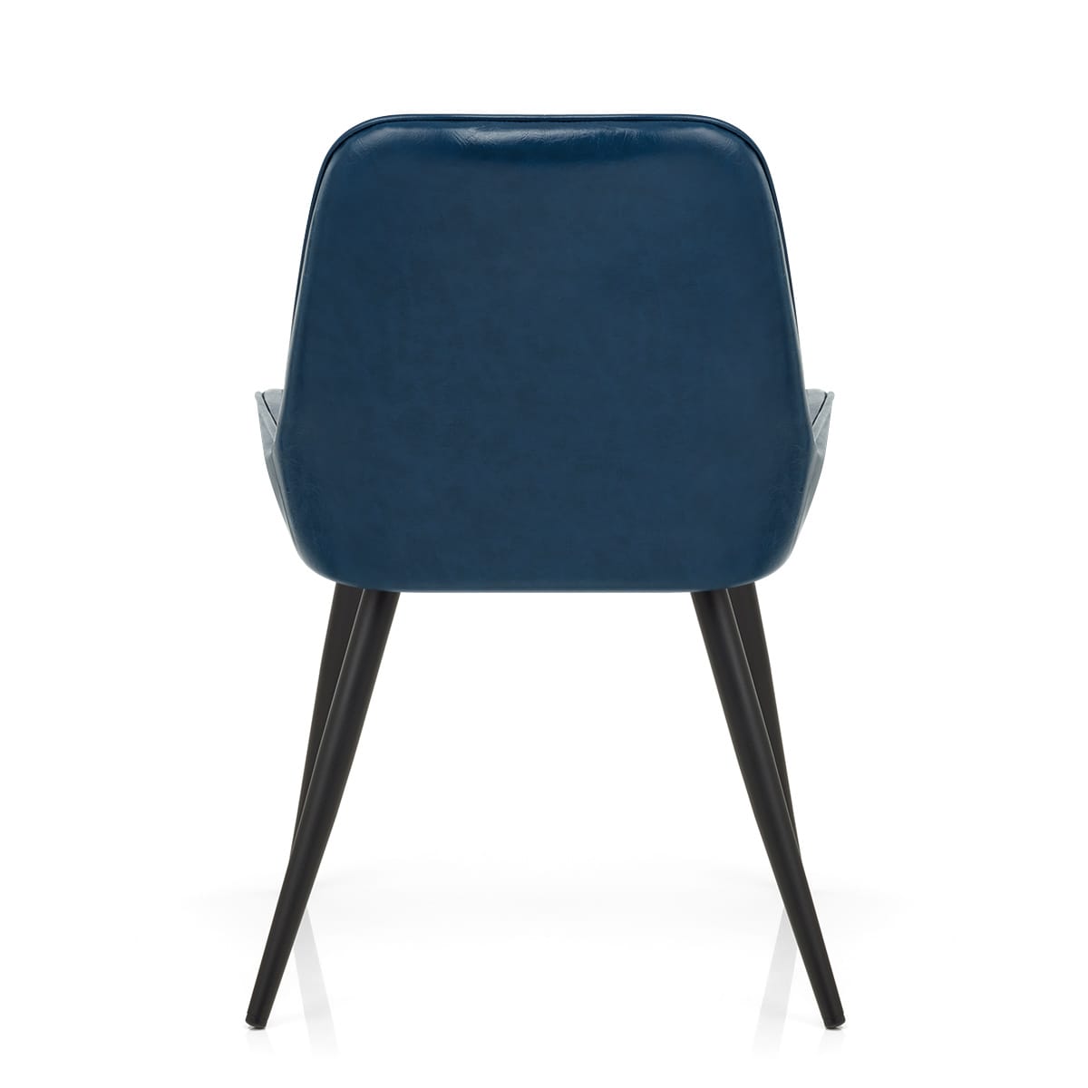 The seat is bolstered by four solid metal legs, all with a black powder coated finish that suits the blue faux leather upholstery. Floor plugs on the underside of the frame help to protect surfaces from marks, making this an ideal product for everyday use.