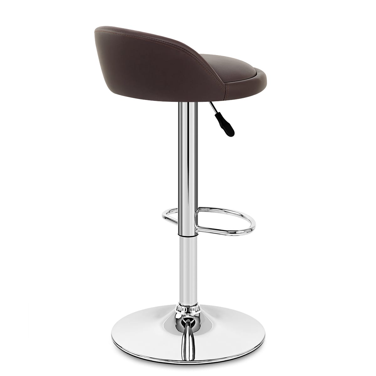 A round seat has sumptuous foam padding that comforts and supports your body, with a raised section at the rear all covered in genuine brown leather.