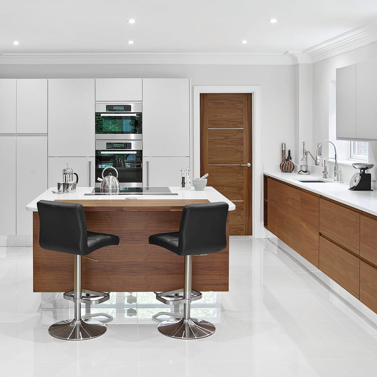 Bar stools generally come in two main heights - kitchen counter (around 65cm) and bar height (around 75cm). Measure the distance from your floor to the underside of your counter and leave around 25–30cm for comfortable legroom.