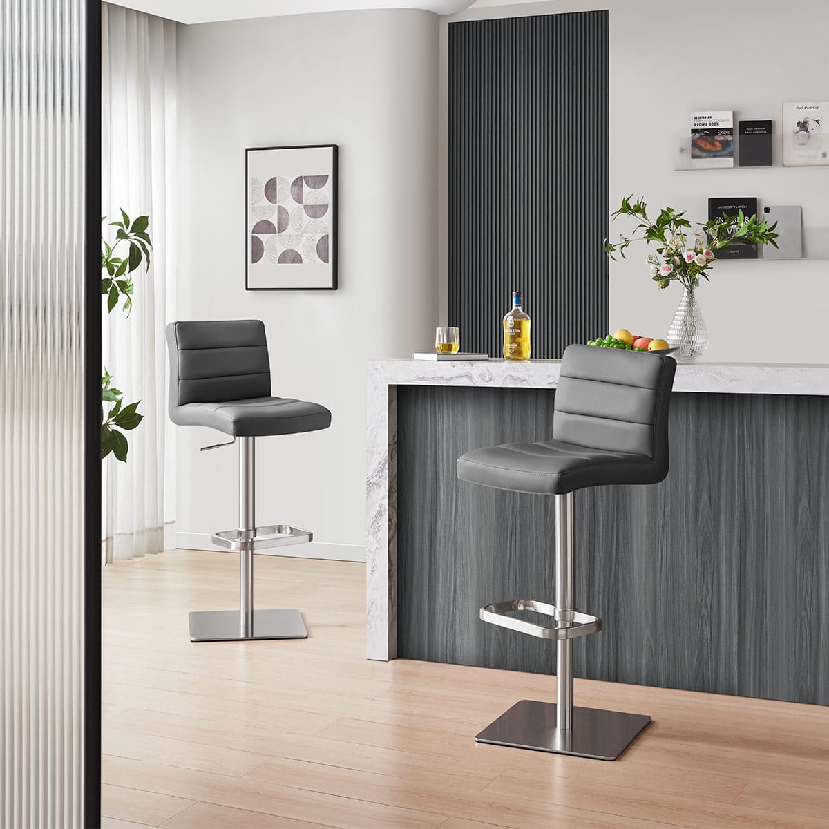 Our range includes bar stools with a variety of features depending on the model. Options include height adjustment, 360 swivel, and auto-return mechanisms, so you can choose the style that best suits your space and how you plan to use it.