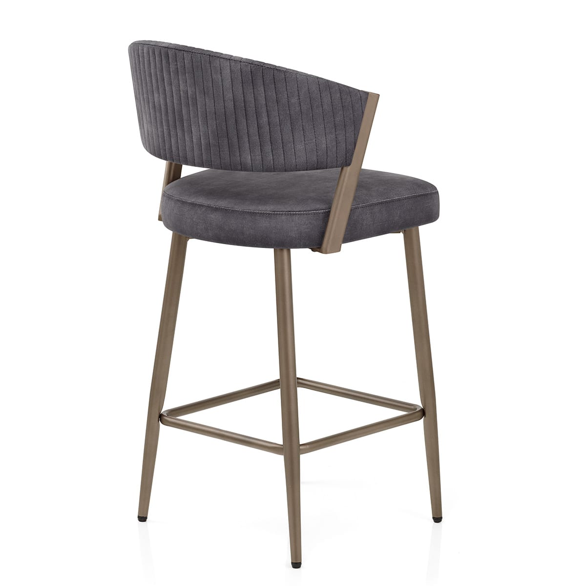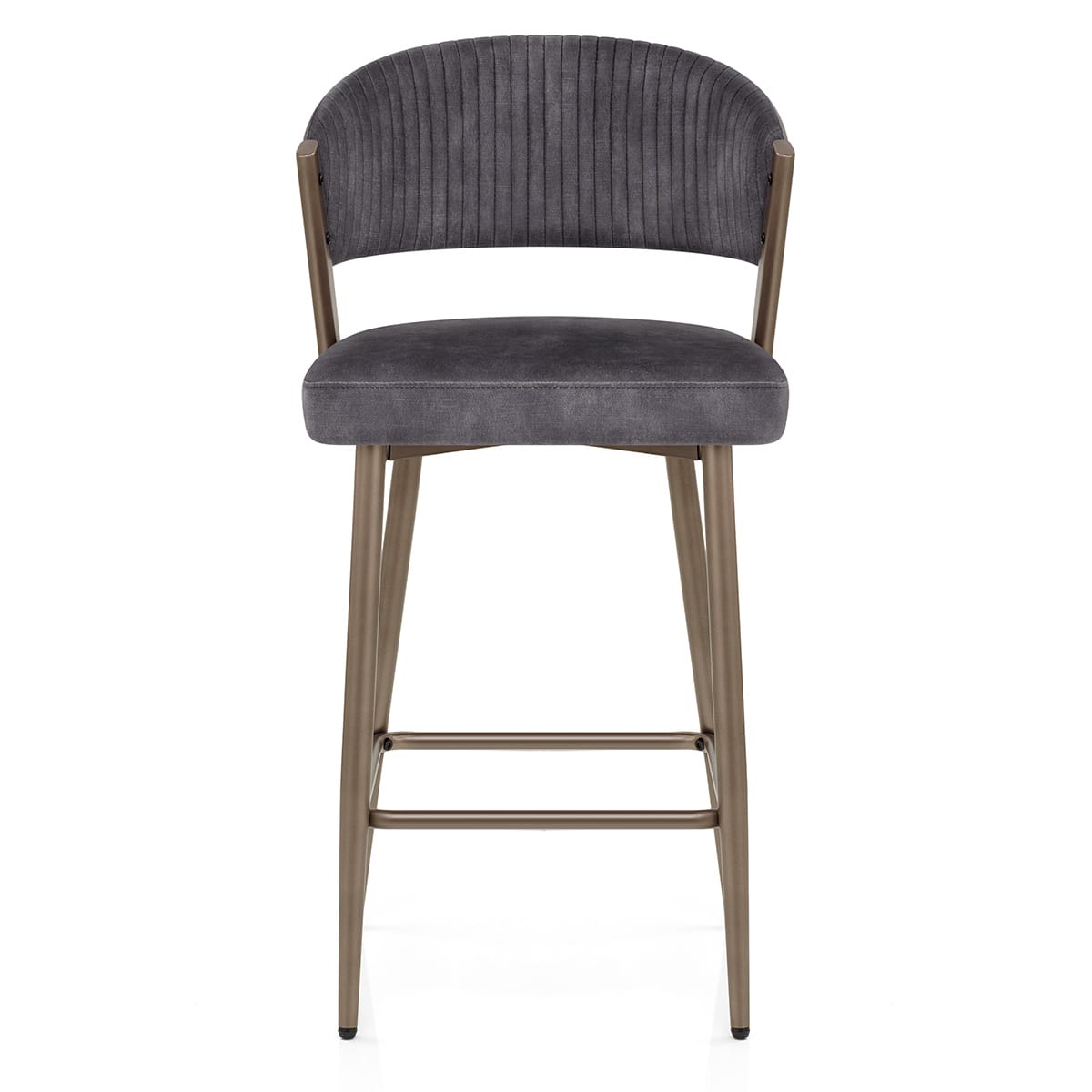 Finished in an antique bronze that compliments the dark seat, the metal frame is primarily made up of four tubular legs that taper as they descend. There are angled to strengthen and improve stability, also done so through a rectangular reinforcement bar that doubles as a footrest. The ends of the legs use adjustable floor protectors to help minimise marks to the flooring.
