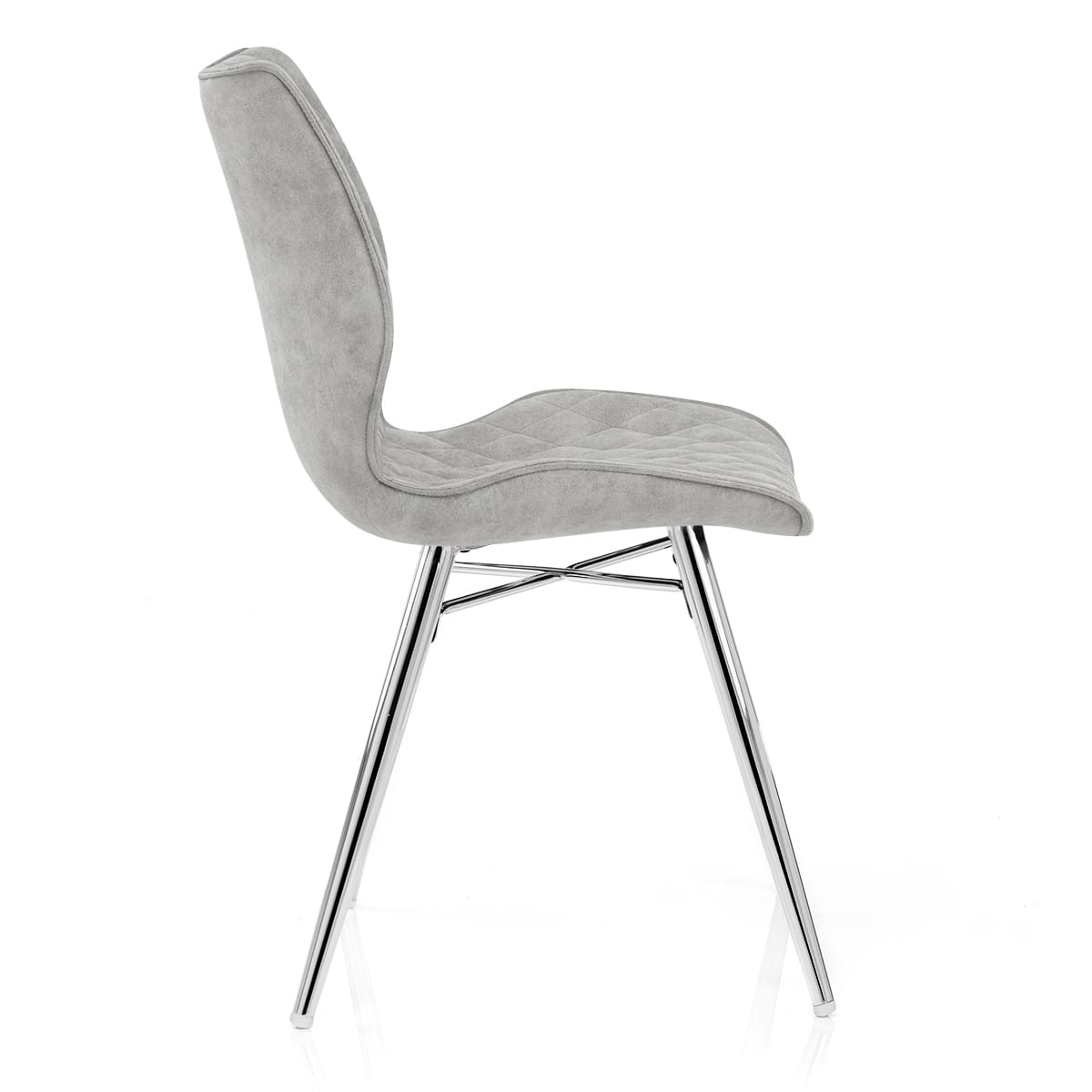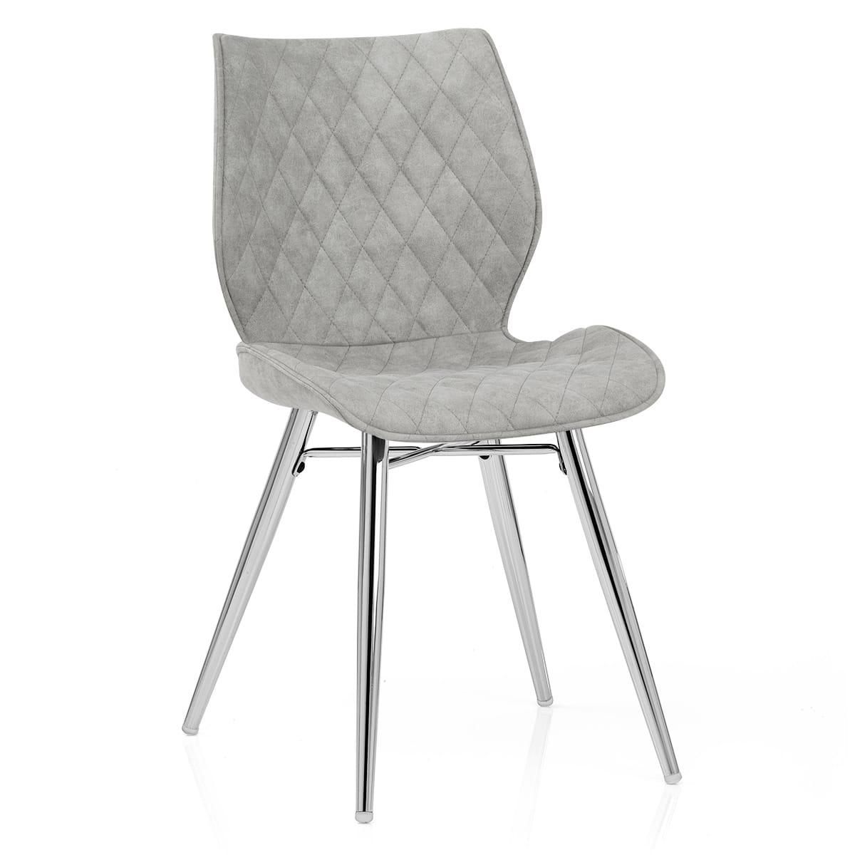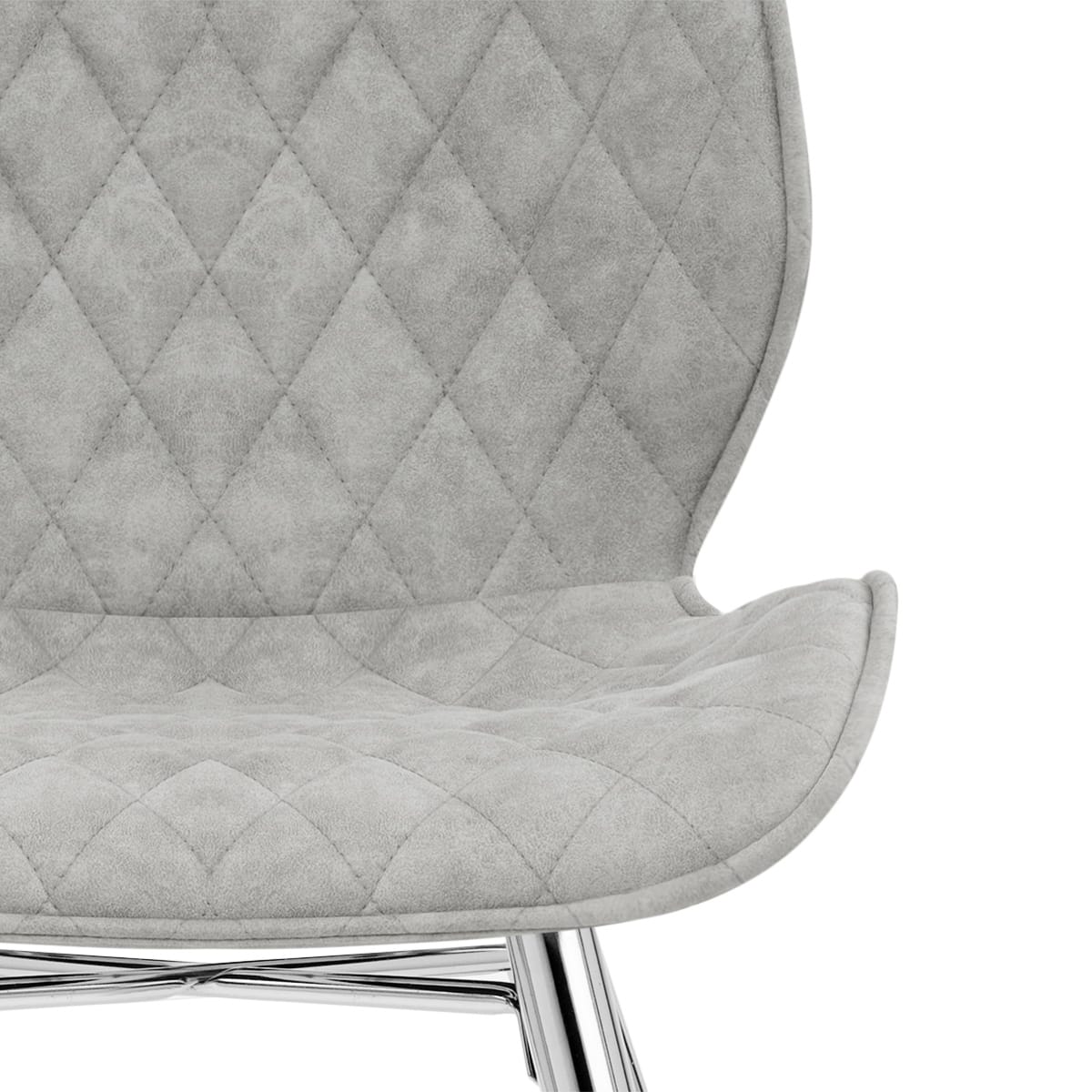 Striking and stylish, the seat and back have a unique flared design, which is also bedecked with quilted diamond stitching. Comfort is offered with the padded antiqued grey faux suede upholstery that has chic trendy appeal.