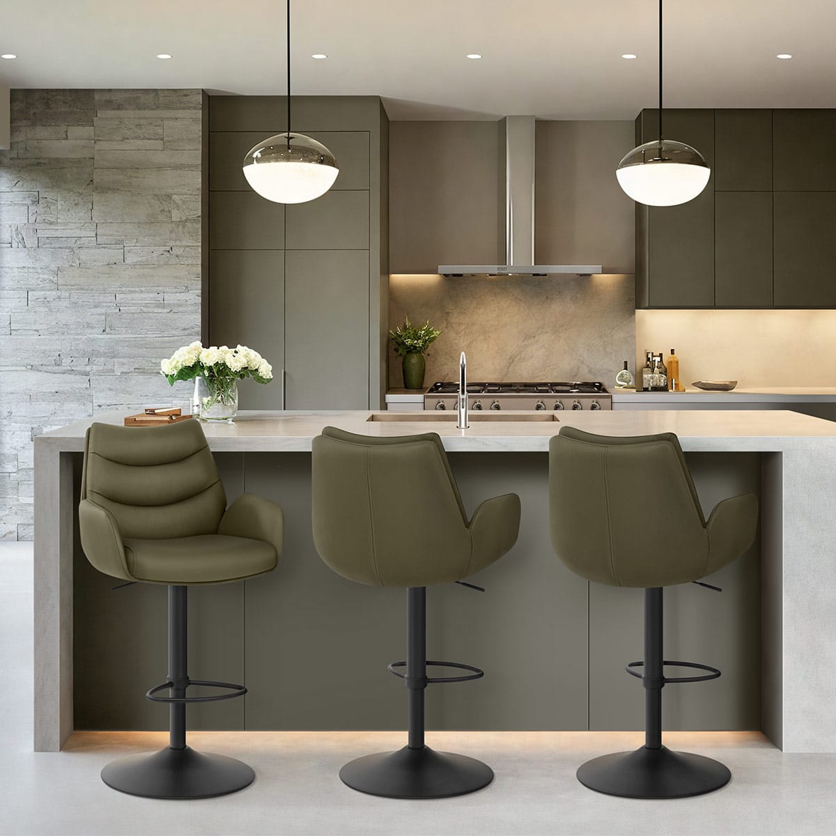Indulge in a combination of comfort and elegance with the Madrid Real Leather Gas Lift Stool Green, our armchair-inspired bar stool where fashion meets class. More than just a statement piece ' it's a reflection of refined taste and impeccable style.