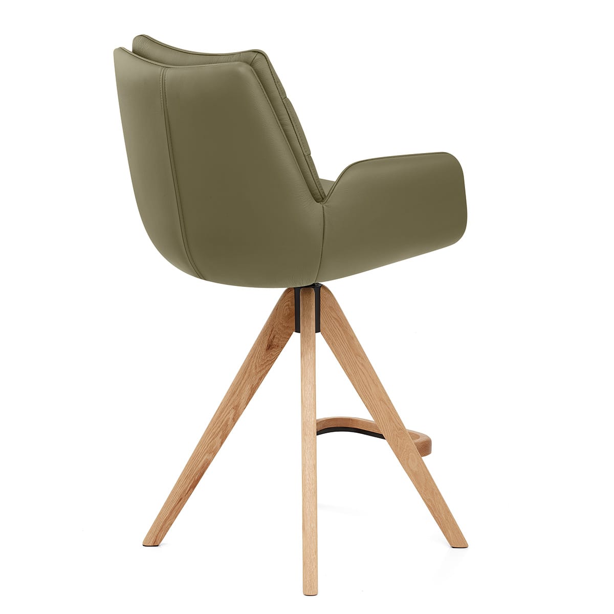 Made from solid oak, the frame features four legs angled in a pyramid shape. This frame also facilitates a swivel and auto-return mechanism, allowing you to maintain a tidy setup effortlessly. An exclusively curved bracing bar reinforces the front legs, doubling as a footrest. Finally, each leg is outfitted with floor protective pads for enhanced floor protection.